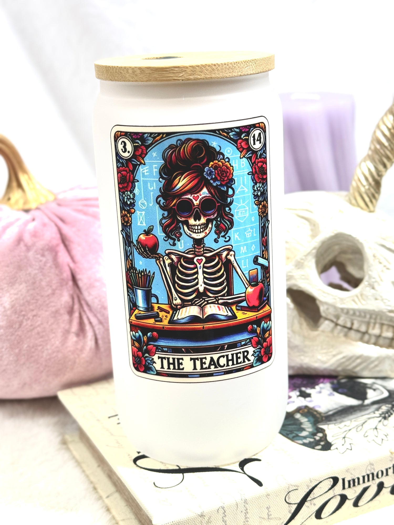 Skulls & Florals Glass Tumbler - 16oz