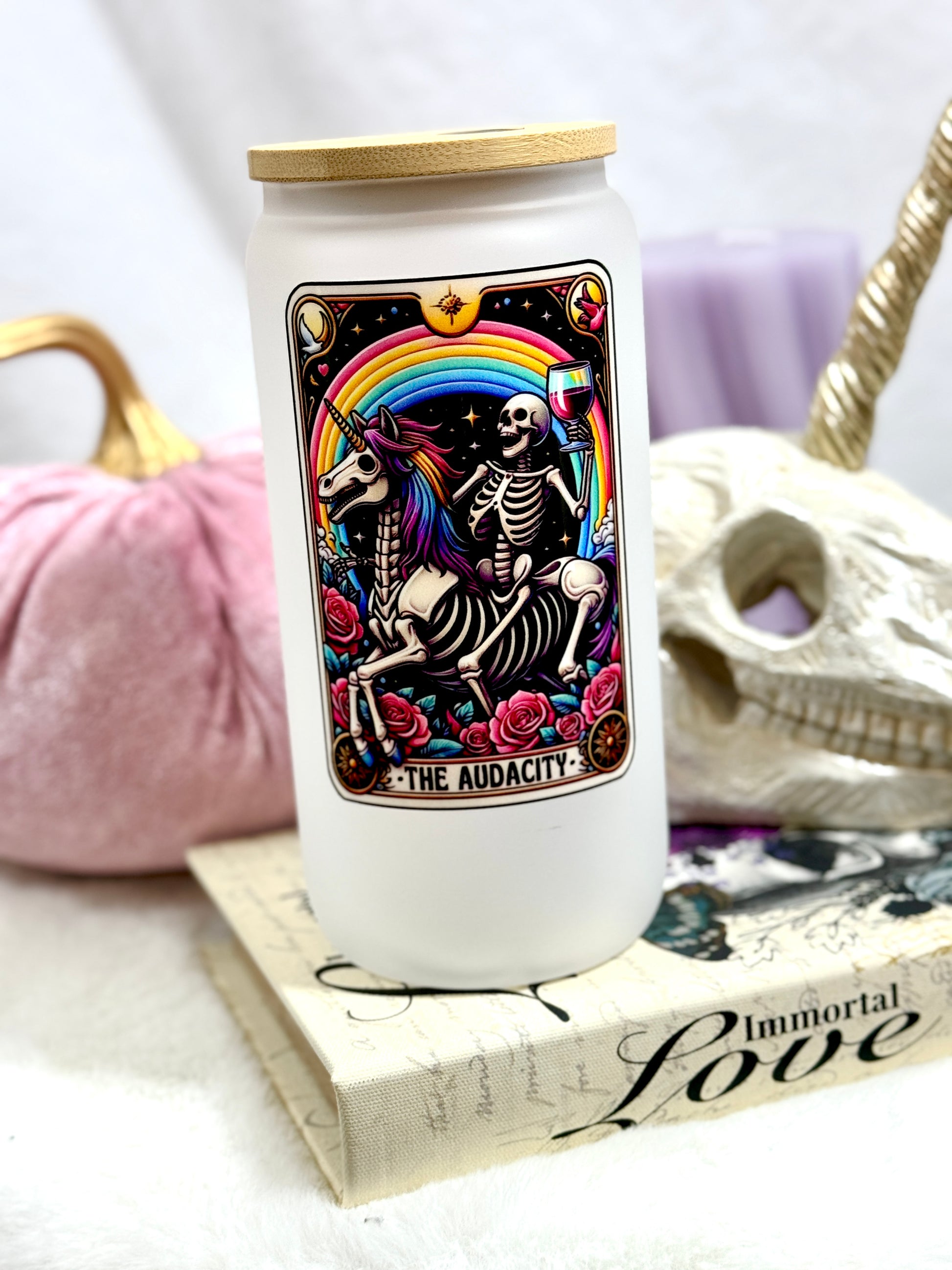 Get in touch with your gothic side with The Audacity Tarot Card Tall Can Glass Tumbler - 16oz. This summer, let your sharp-tongued and witty personality shine while sipping on your favorite drink. Perfect for a Tarot Card Summer, this tumbler will add some quirky fun to your beverage routine.